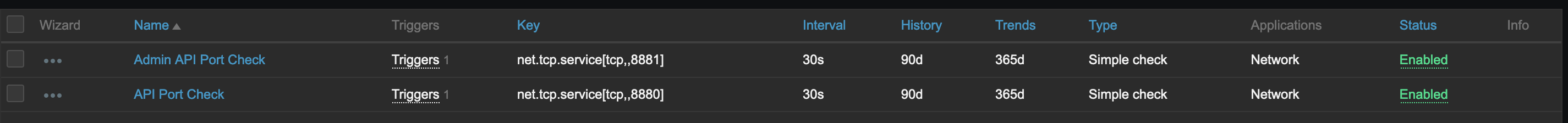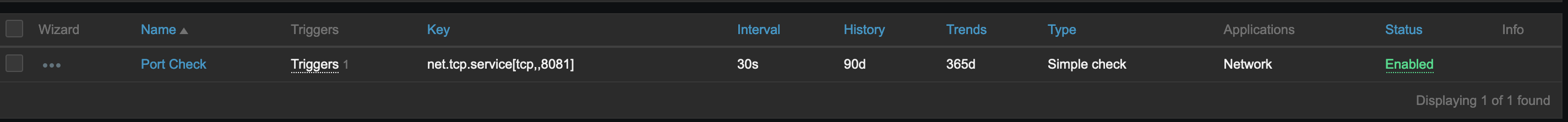 - Create an item for a registered host with net.tcp.service[tcp,,8081]