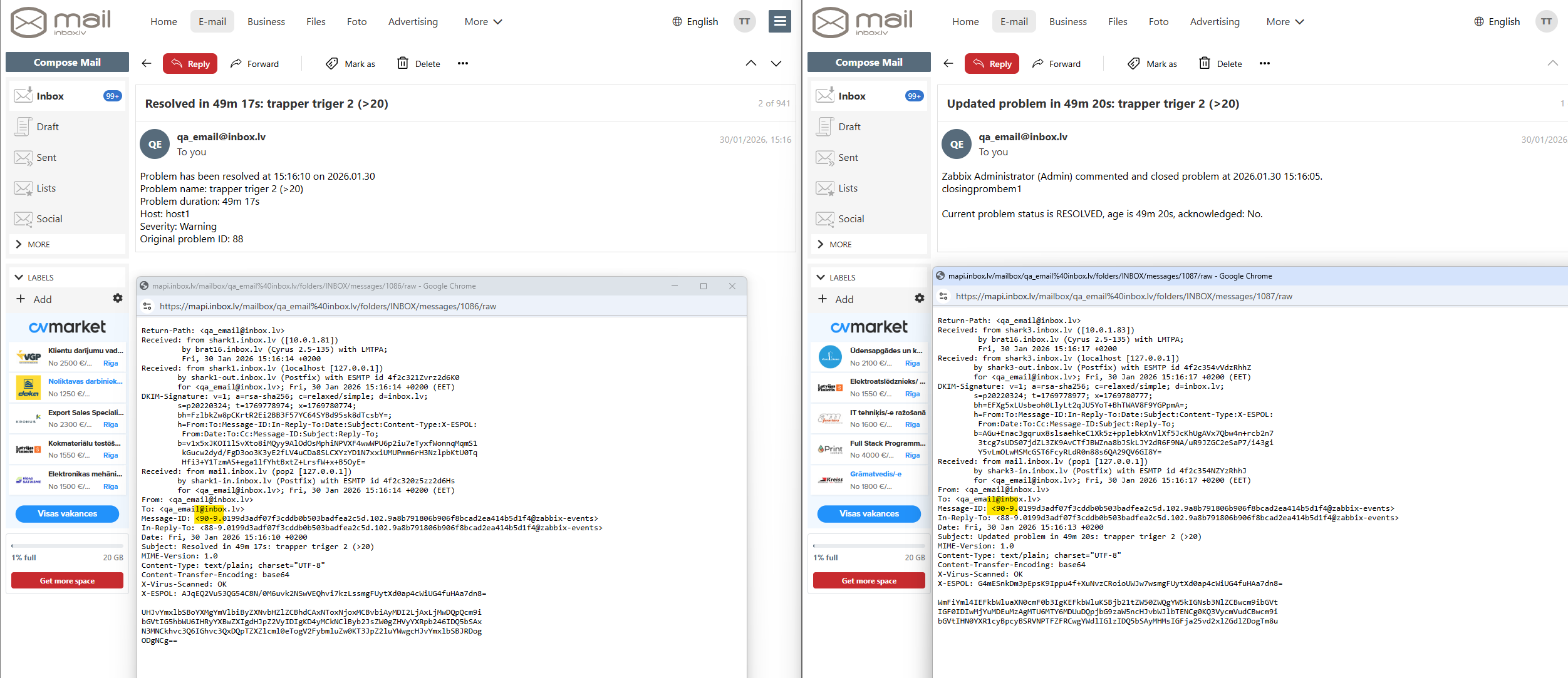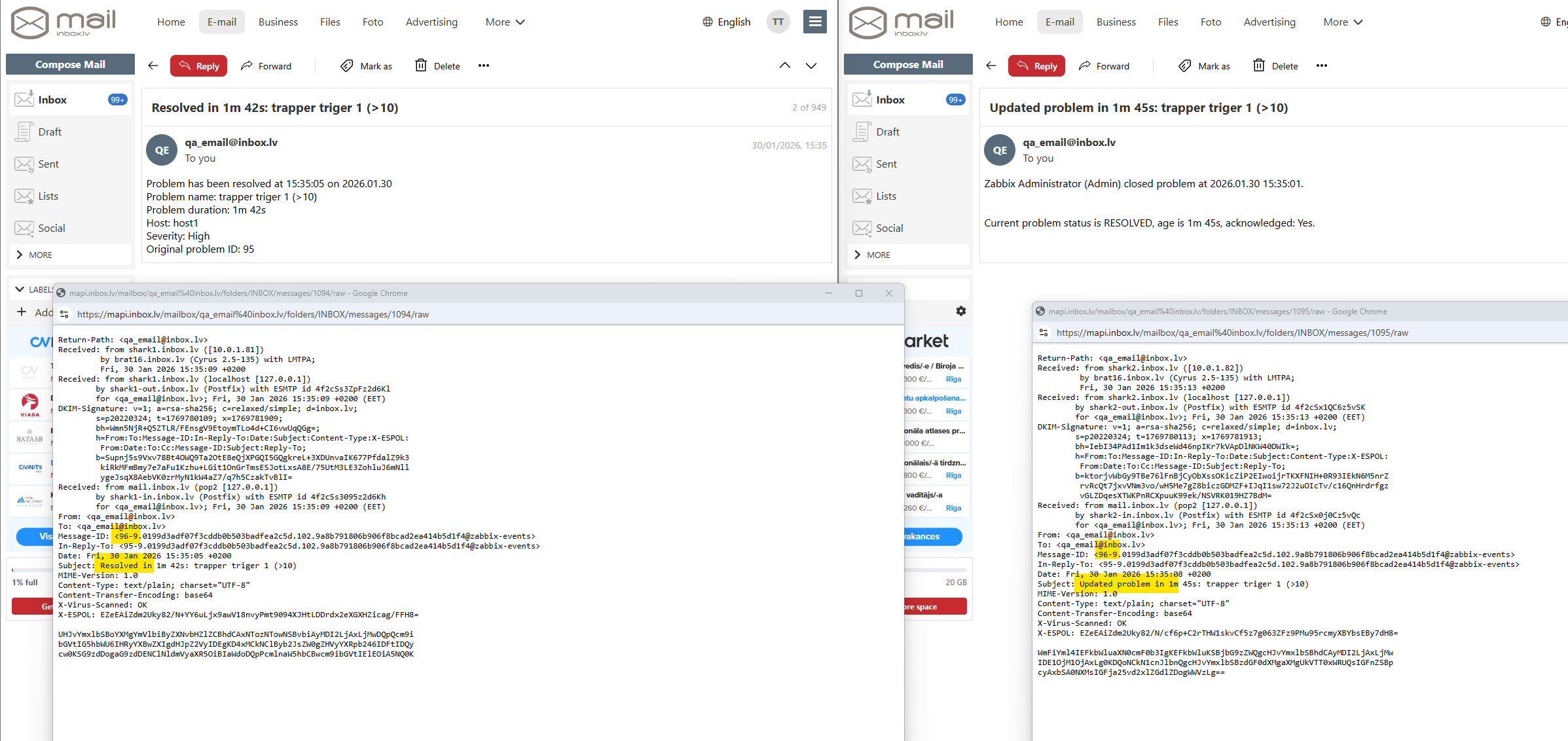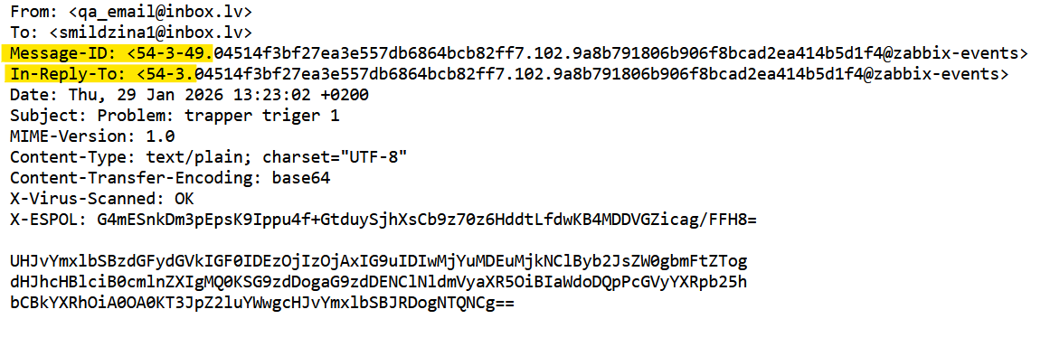 Email notification sent does not have Message-ID header field.