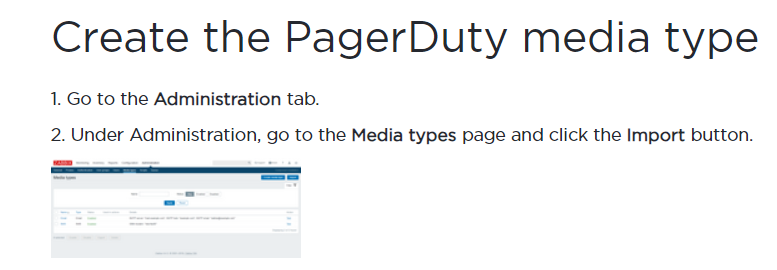 The PagerDuty integrations page has not been updated for version 6.4. For example, the media type creation has been moved to the "Actions" section, but the page still references the old way of doing it through the "Administration" section.