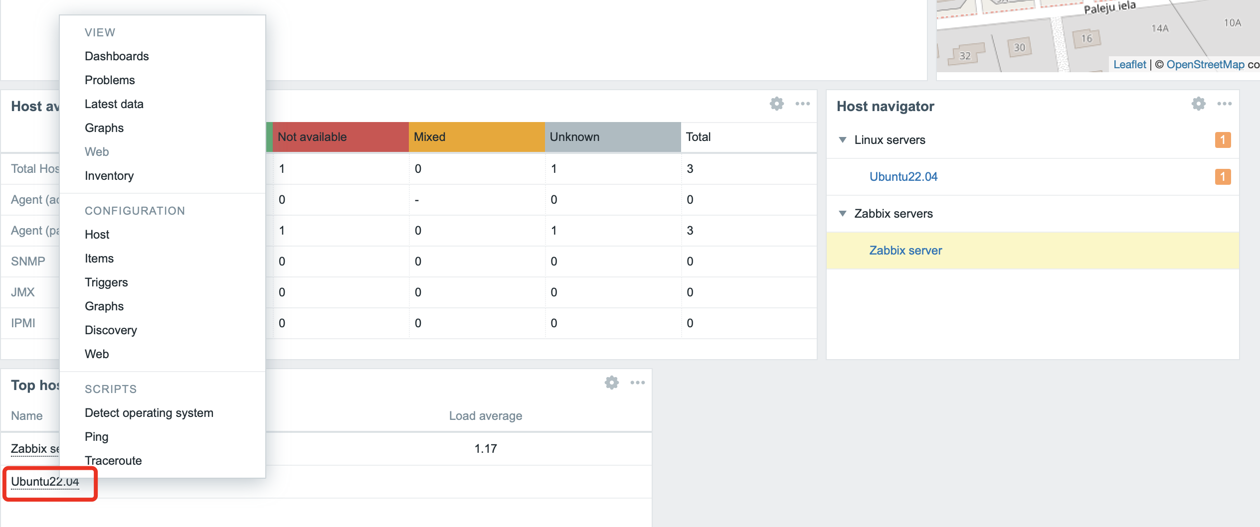 Other widgets, such as 'top hosts,' have the functionality to open a menu after clicking on the host name.