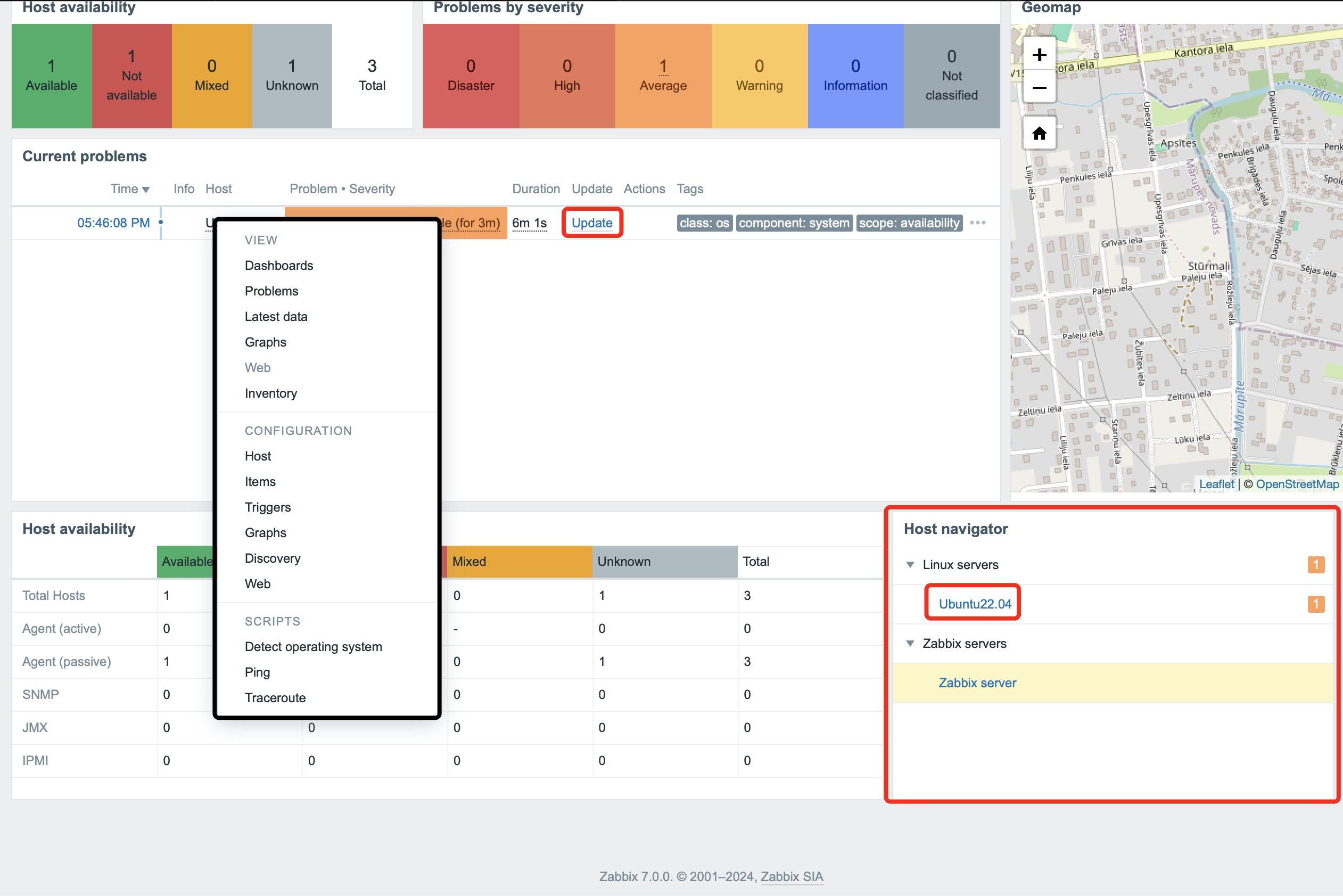 The host navigator widget displays hosts in blue, similar to other links, but they are not clickable (missing underline decoration) and do not open a context menu to take actions.