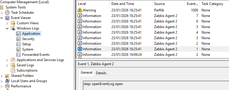 ... 2024/06/20 14:30:53.176808 Detected performance counter with negative denominator the second time after retry, giving up... 2024/06/20 15:30:53.146021 Detected performance counter with negative denominator the second time after retry, giving up... 2024/06/21 02:41:45.172180 Zabbix Agent 2 stopped. (6.4.2) 2024/07/17 15:23:17.850481 Starting Zabbix Agent 2 (6.4.2)