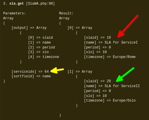 Array ( [output] => Array ( [0] => slaid [1] => name [2] => period [3] => slo [4] => timezone ) [serviceids] => 332 [sortfield] => name ) Result: Array ( [0] => Array ( [slaid] => 32 [name] => SLA for ServiceI [period] => 0 [slo] => 90 [timezone] => Europe/Warsaw ) [1] => Array ( [slaid] => 33 [name] => SLA for ServiceII [period] => 0 [slo] => 90 [timezone] => Europe/Warsaw ))