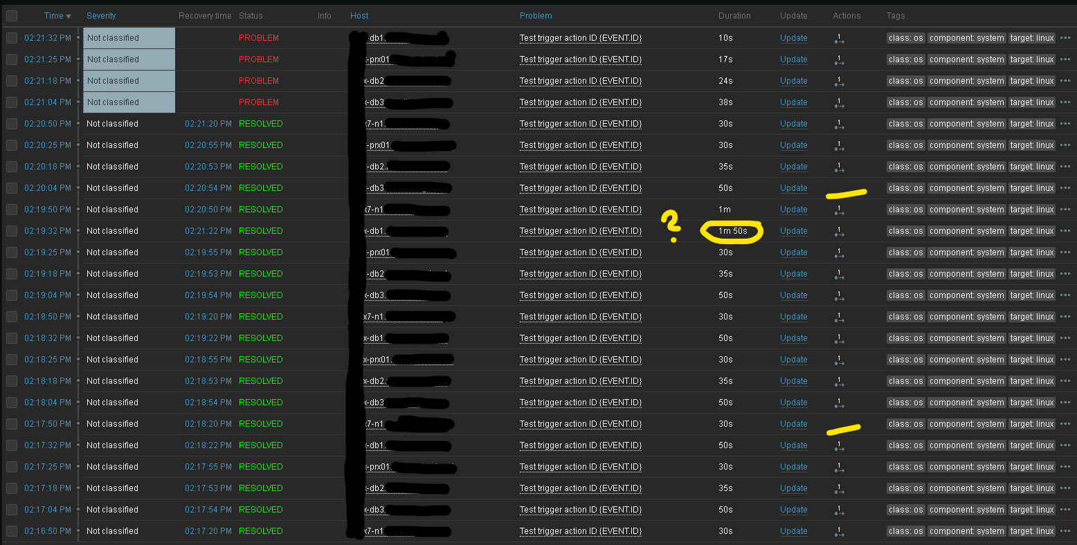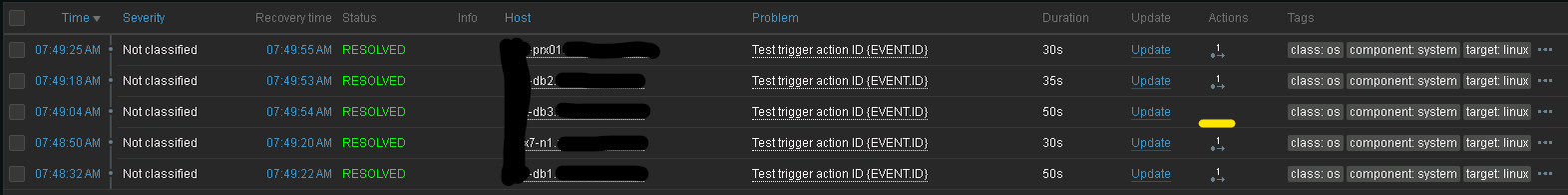 - Note: there's nothing in server log, no failure, action is for some reason completely skipped and it happens randomly (random host, trigger, etc...)