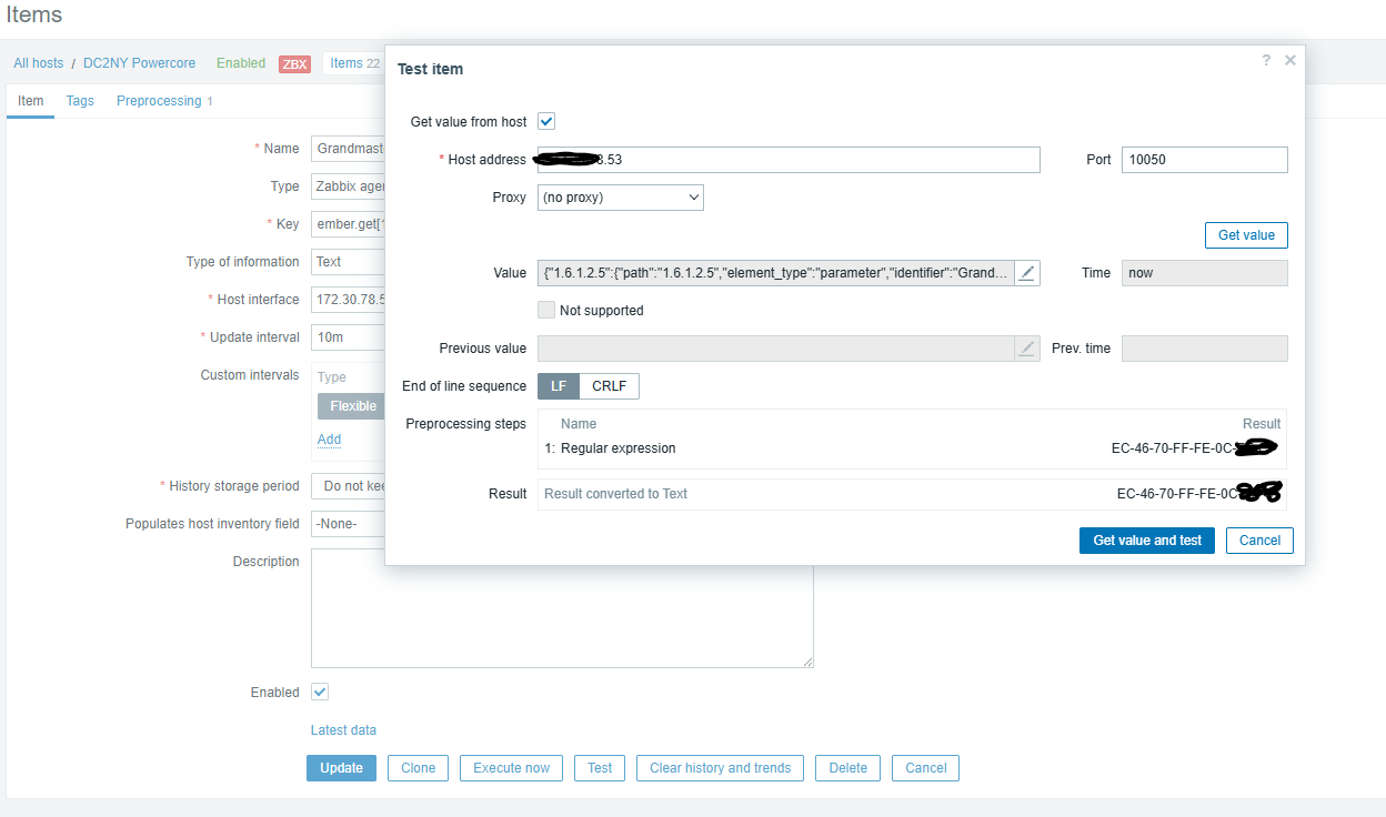 zabbix_agent2 -t "ember.get[redacted:9000,1.0.1.0.0.3]" ember.get[redacted:9000,1.0.1.0.0.3] [m|ZBX_NOTSUPPORTED] [Failed to execute handler: handler failed: failed to handle request: failed to find element, err Failed to find Ember+ response in time.: element not found.]