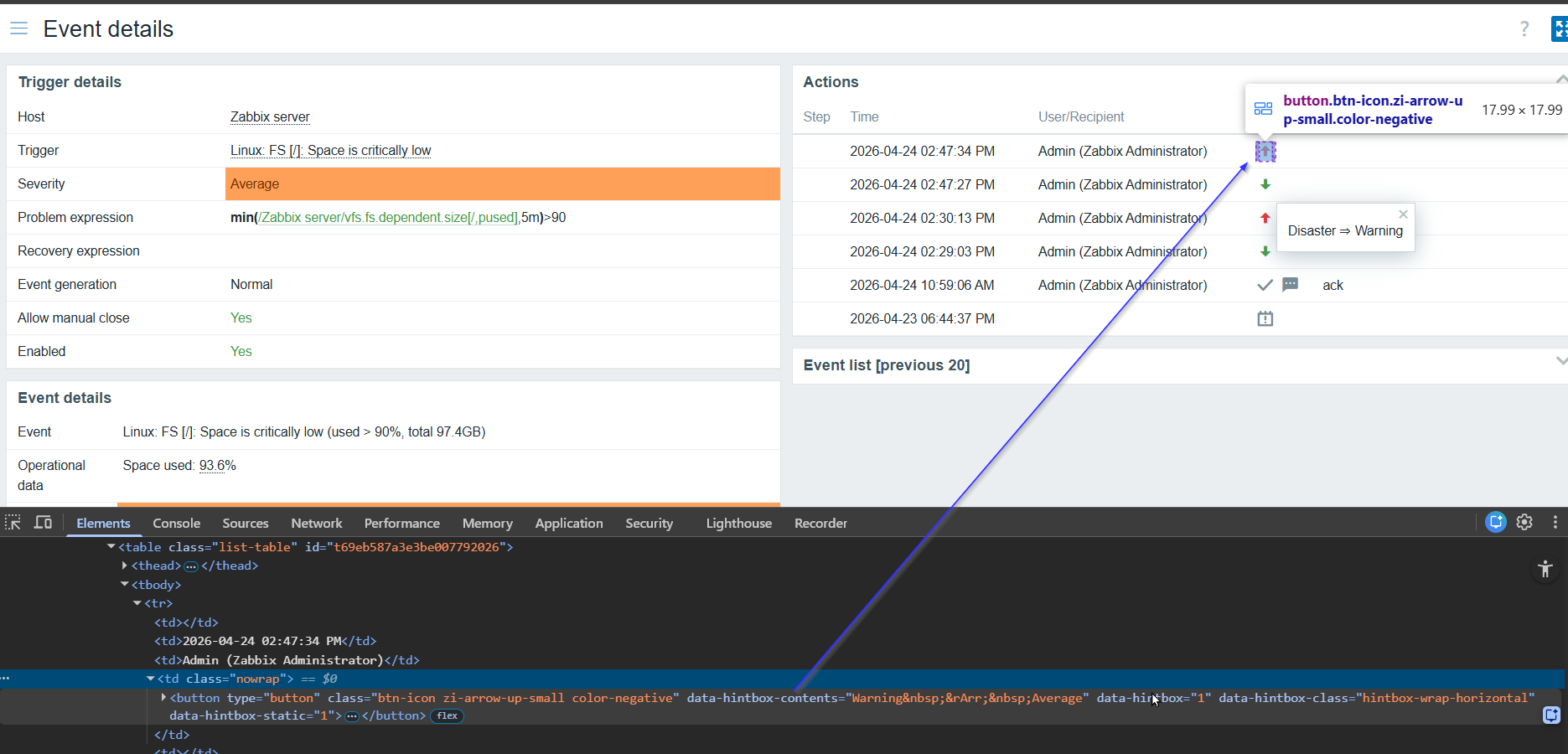 - Navigate to the Accessibility insight for web extension and select the “Fast Pass” on the Zabbix UI.