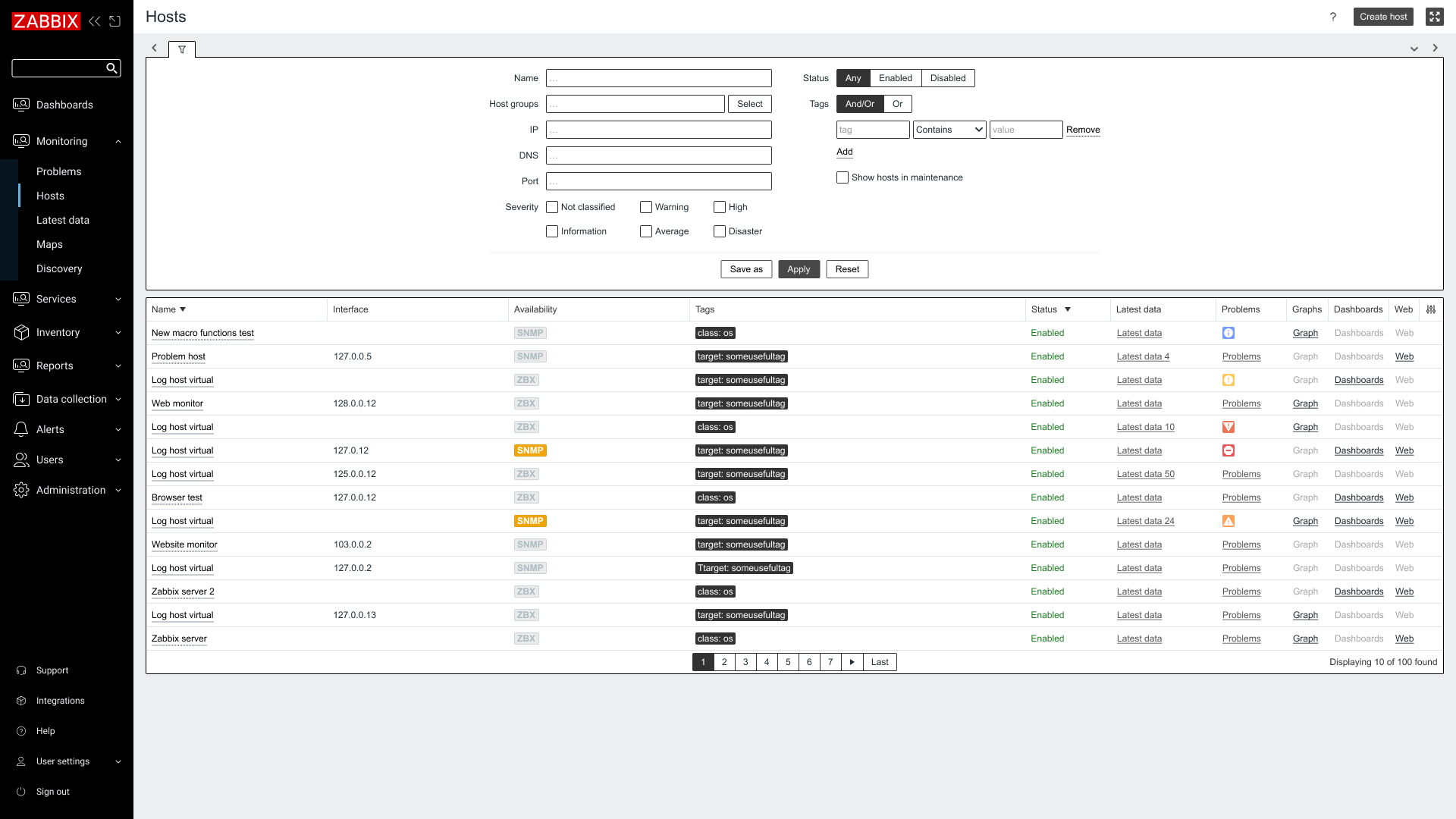 - Text and link buttons with color #737373 do not meet color contrast requirements, recommended alternative #969696 (ex. Data collection → Hosts → Proxy/Templates columns)