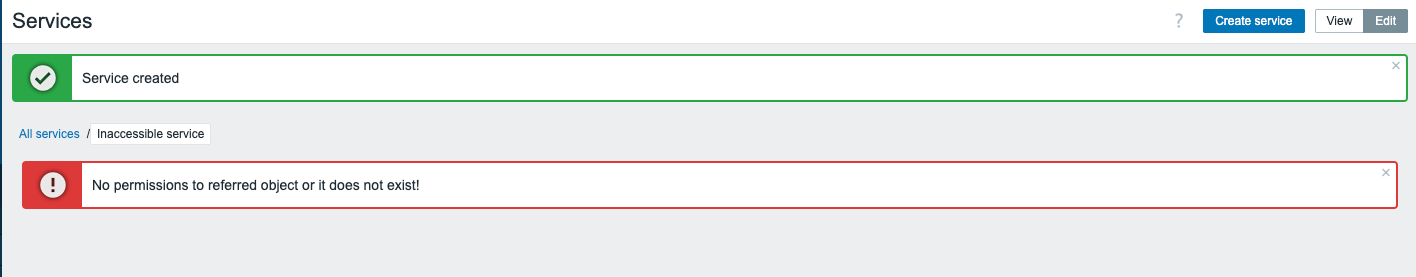 5. Observe that URL is incorrect (?action=service.list.edit&serviceid=15, for example) and leads to the old service resulting in "Access denied" page.