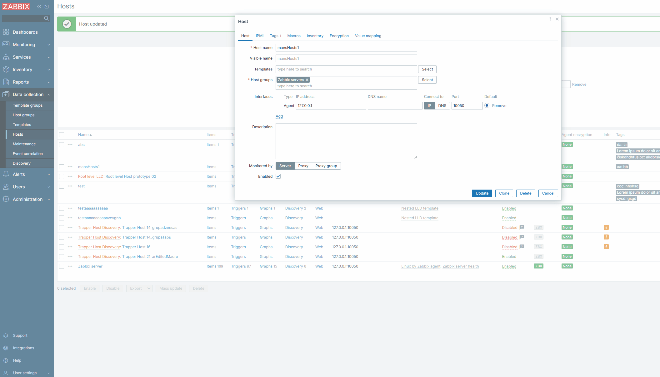 - Open any host, go to Macros tab, then "Inherited and host macros"