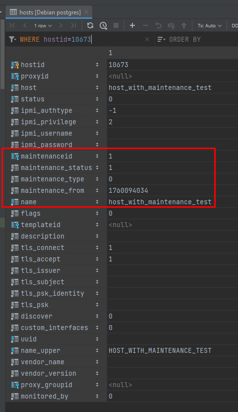 According to the documentation maintenanceid, maintenance_from, maintenance_status and maintenance_type are read-only parameters.