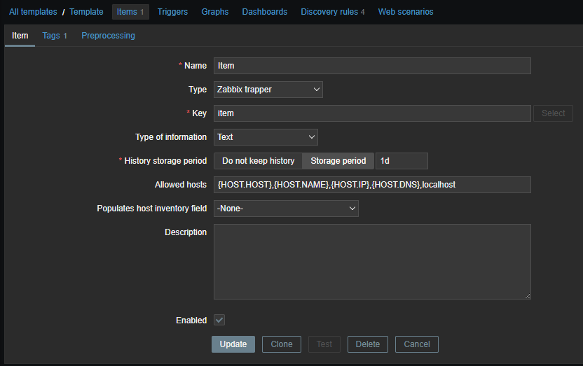 LogFile=/var/log/zabbix-server/zabbix_server.log PidFile=/var/run/zabbix/zabbix_server.pid DBName=<DBName> DBUser=<DBUser> DBPassword=<DBPassword> DBSocket=/var/run/mysqld/mysqld.sock CacheSize=500M ValueCacheSize=64M Timeout=4 AlertScriptsPath=/etc/zabbix/alert.d/ FpingLocation=/usr/bin/fping LogSlowQueries=3000 Include=/etc/zabbix/zabbix_server.conf.d/*.conf