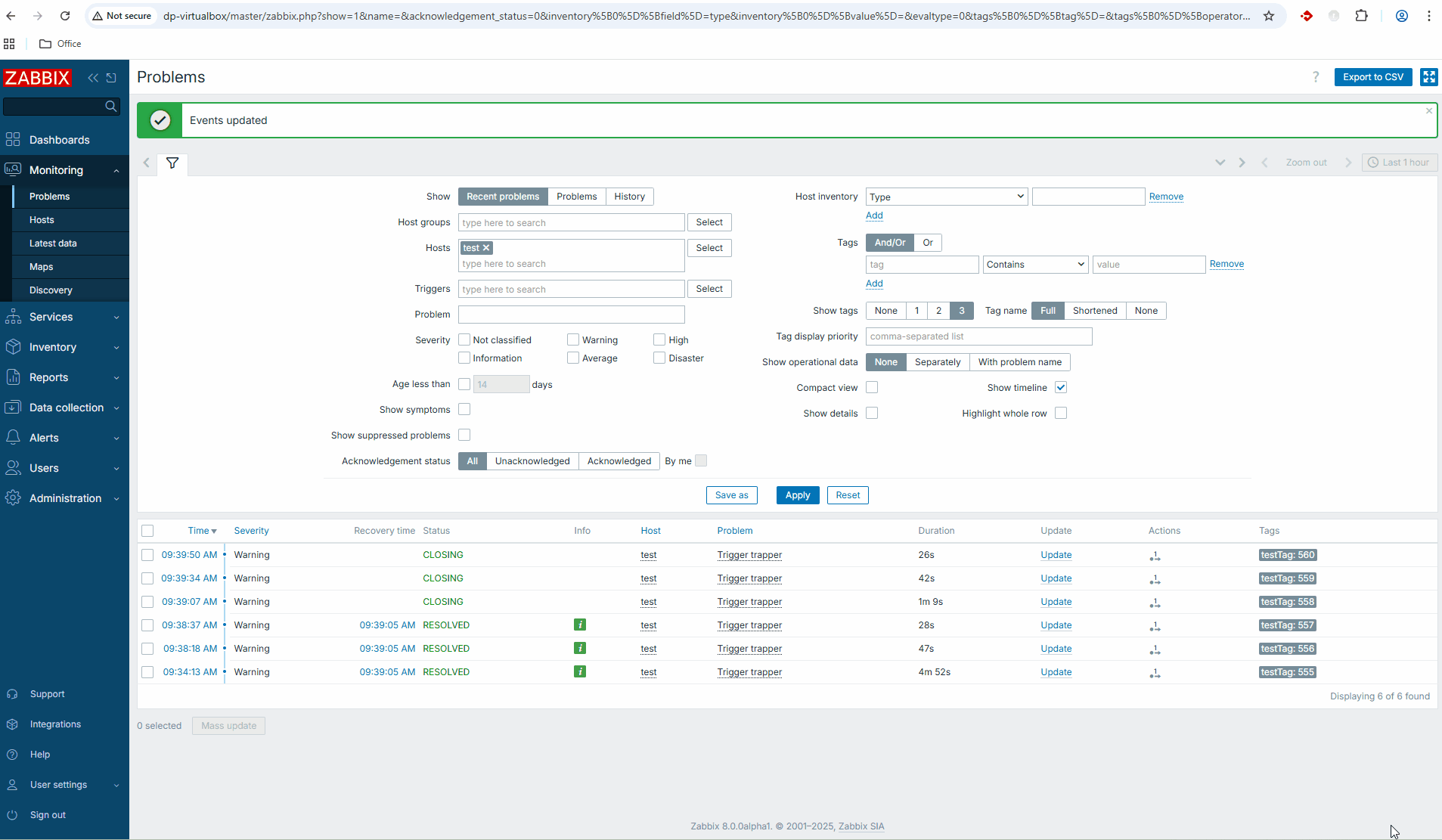 - When the problem message appears on the frontend, navigate to the Event page.