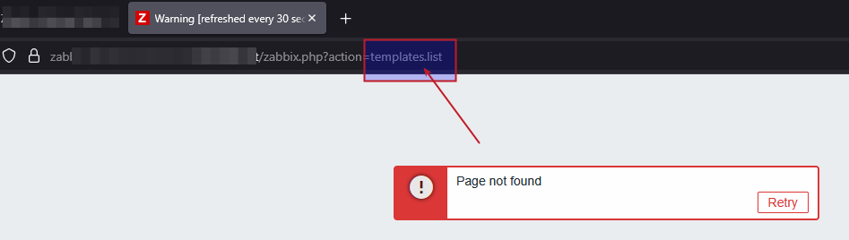 I could not reproduce it myself, but I have reports that if zabbix frontend is hasted using "ingress + load balancer", this (under some conditions) may end up by visiting the "templates.list" page which gives error "Page not found"