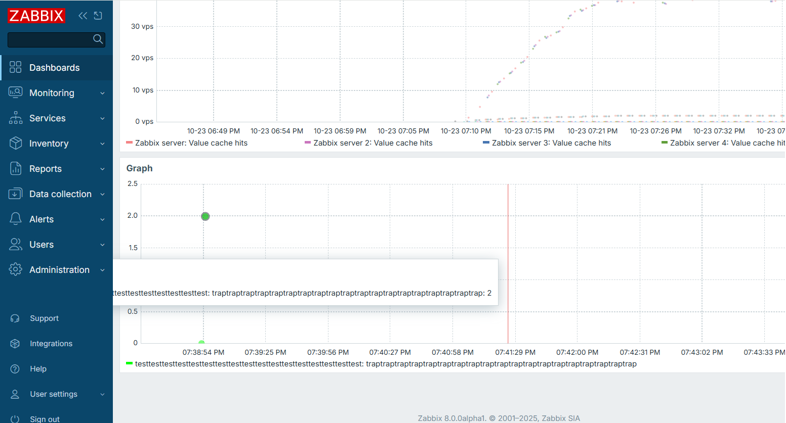 When hovering over data points in certain dashboard widgets (e.g., Scatter plot, Graph), the tooltip may appear behind the sidebar menu if the data point is located near the left edge of the widget. This issue becomes more noticeable when the tooltip contains long text. As a result, part of the tooltip is hidden behind the sidebar, making it unreadable.