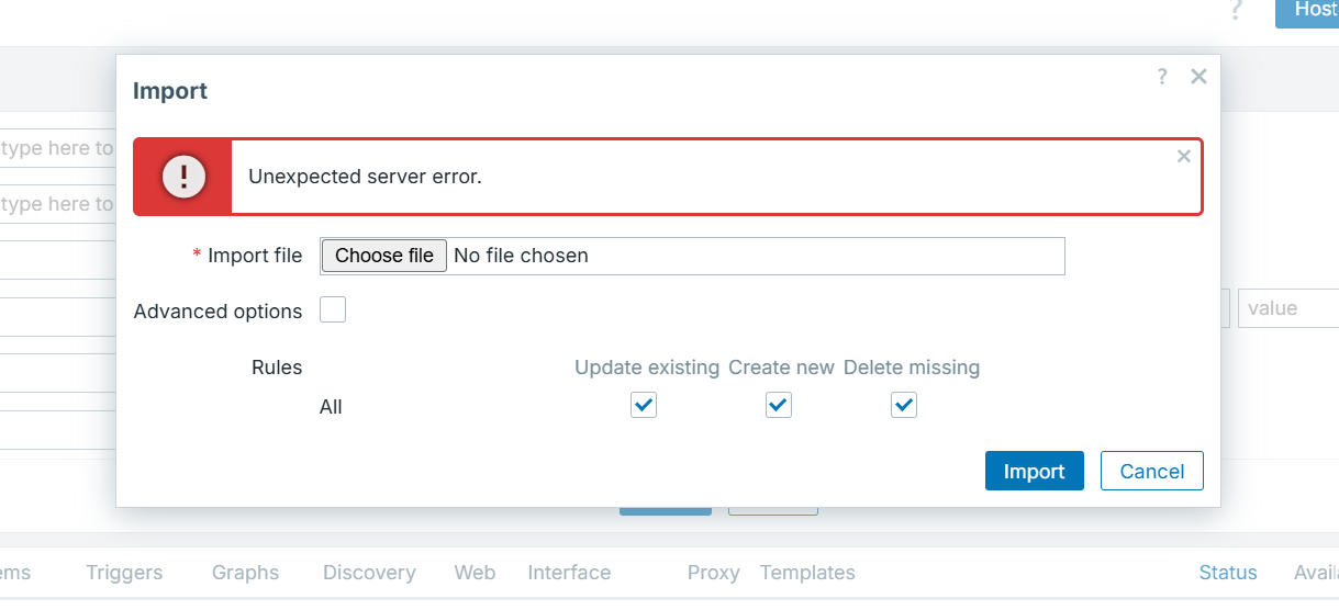 Reproducible in all places where some kind of import is possible - Hosts, Templates, Maps, Media types, Images