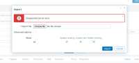 Result: error message with text "Unexpected server error." is displayed, which is misleading for the user