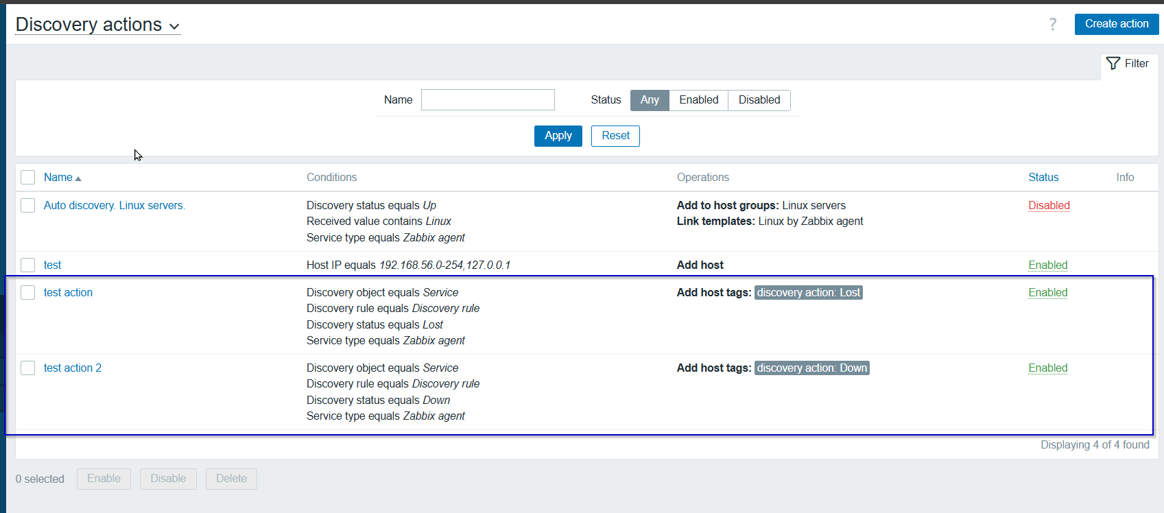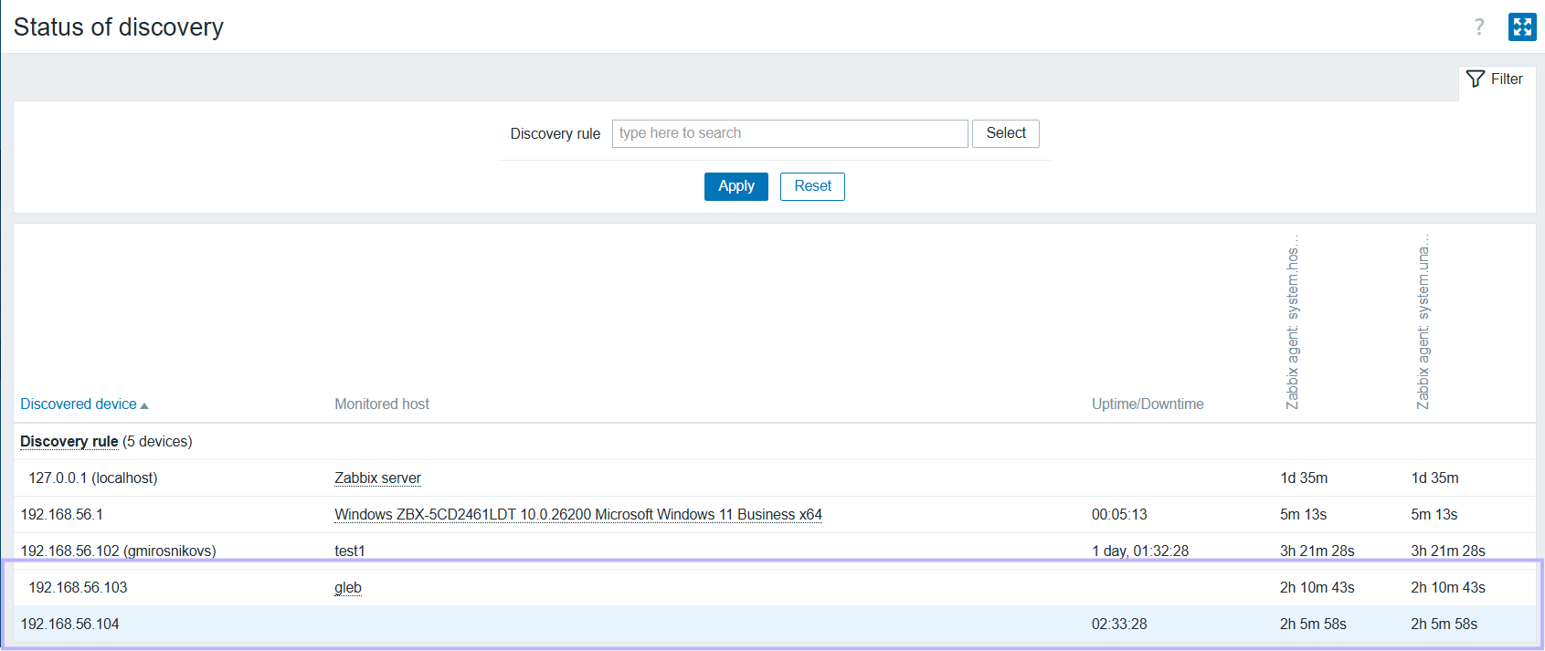 The two IP addresses are both reported as discovered, as in older Zabbix release.