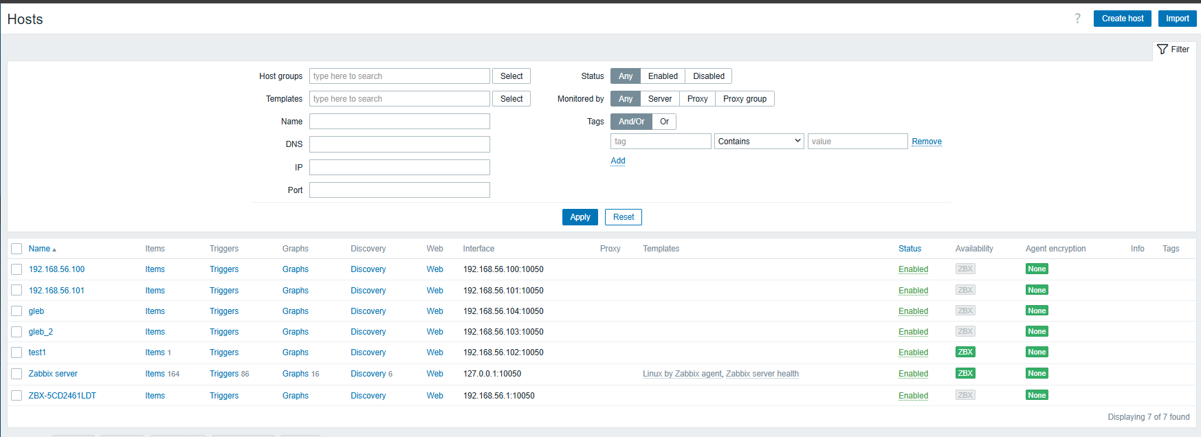 - Add a secondary address to the host  (192.168.64.10) and let Zabbix discover this second IP too
