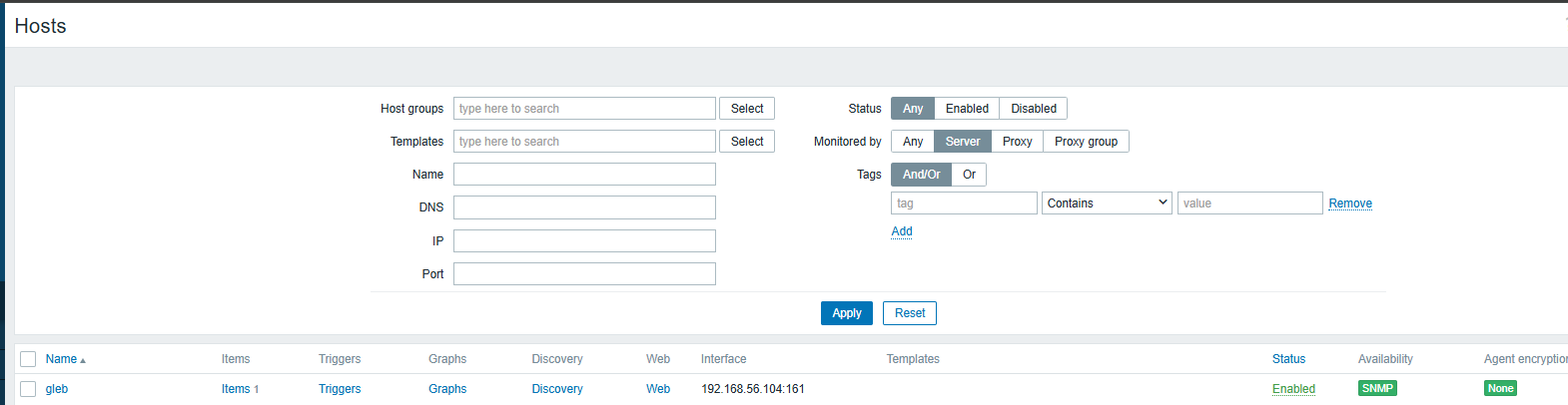 - Let Zabbix discover the first IP and associate to the monitored host