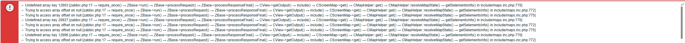 - No “Undefined array key / Trying to access array offset on null” notices in include/maps.inc.php during getSelementsInfo() / resolveMapState().