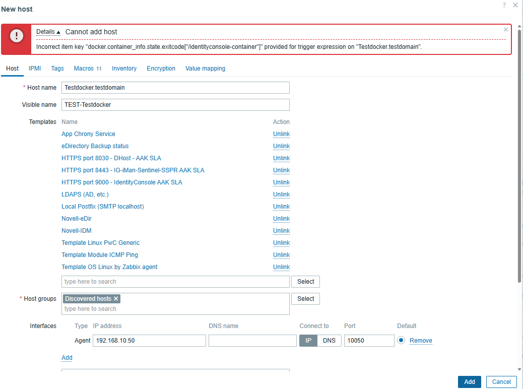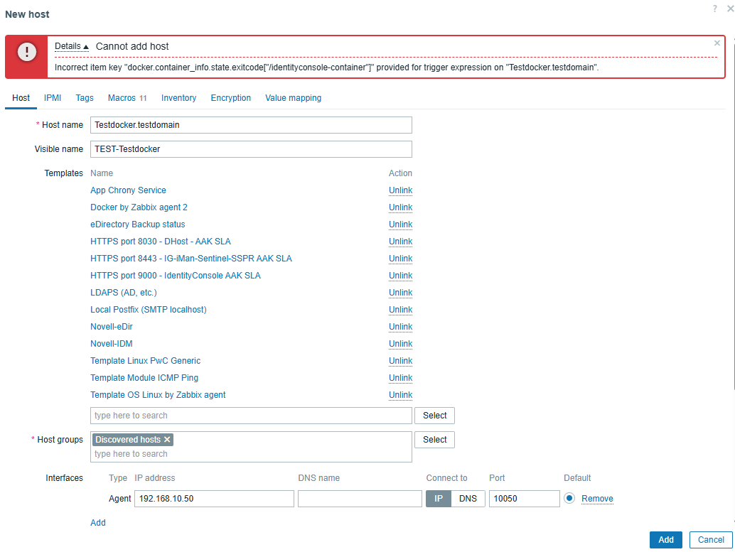 4. Only solution I have found so far is create a host from scratch and add templates manually to that, set up requires macros manually as well.