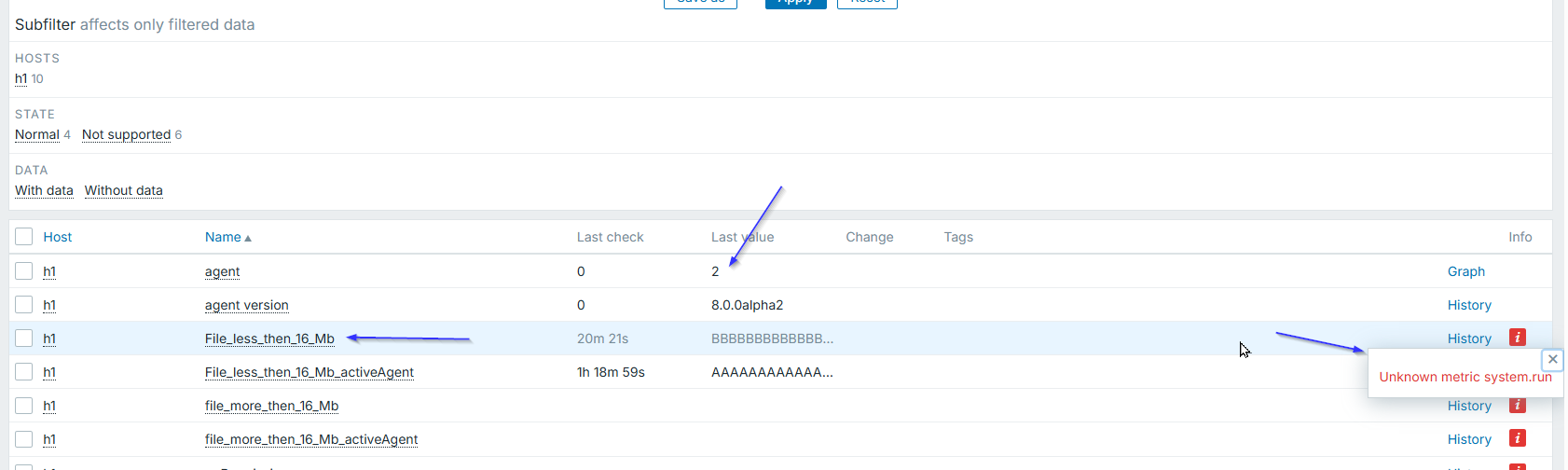 Result: Expected: Red icon and error message like "command output exceeded limit of 16384 KB."