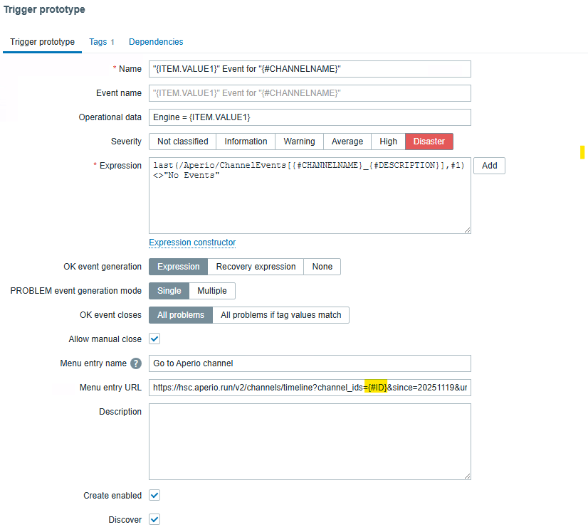 For instance the "Description" field of the trigger prototype remains empty and when using an LLD macro in the "Menu entry URL" field it stays unresolved.