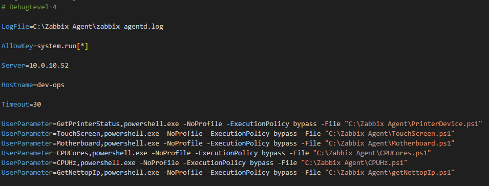 1. Create a UserParameter with a powershell script ( We are trying to monitor touchscreen and printer status and collect some system data, most of the time we see this problem in a printer script )