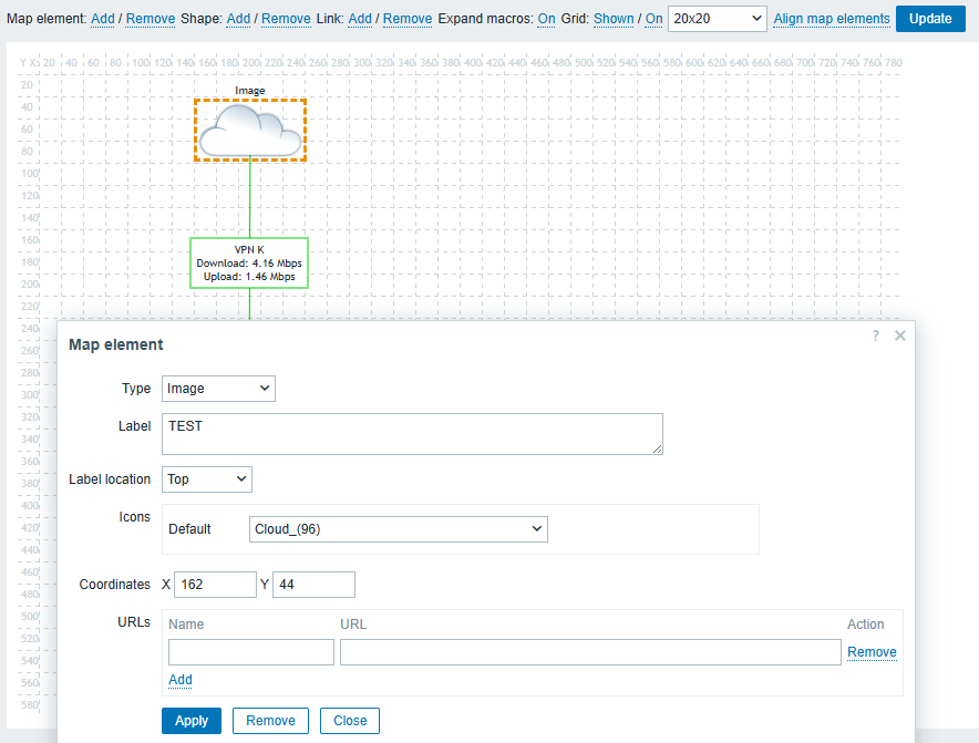 Hello, I use the API to create maps in Zabbix. When I create an image element, its name is always displayed as “Image”. Zabbix ignores the label parameter.