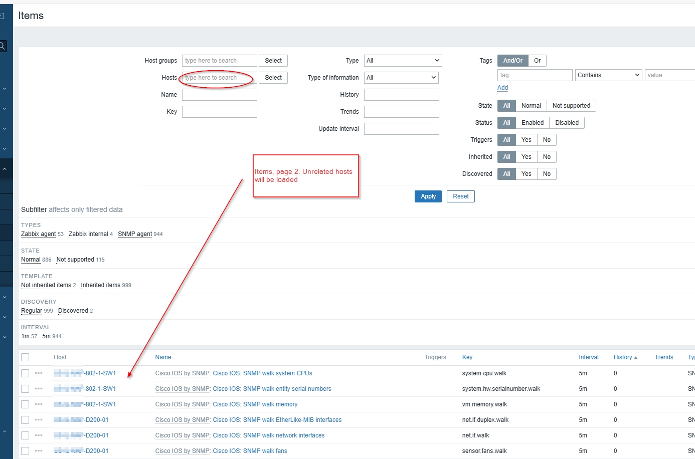 Summary: Pagination in the Zabbix frontend loses host-specific filters when navigating beyond page 1 in the Items and Triggers views. This causes unrelated hosts to appear, despite the filter bar showing the correct host.