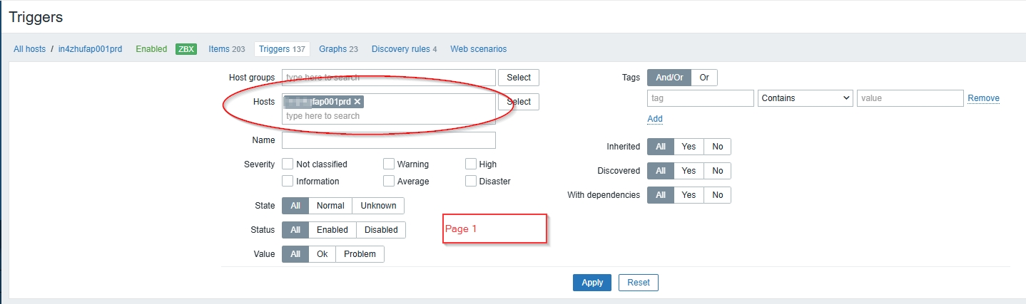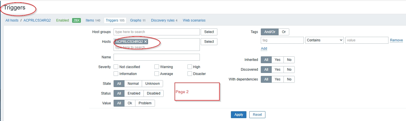- Page 2 should continue showing items/triggers only for the selected host.