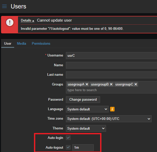 - Insert wrong time for Autologout (Ex 1m).