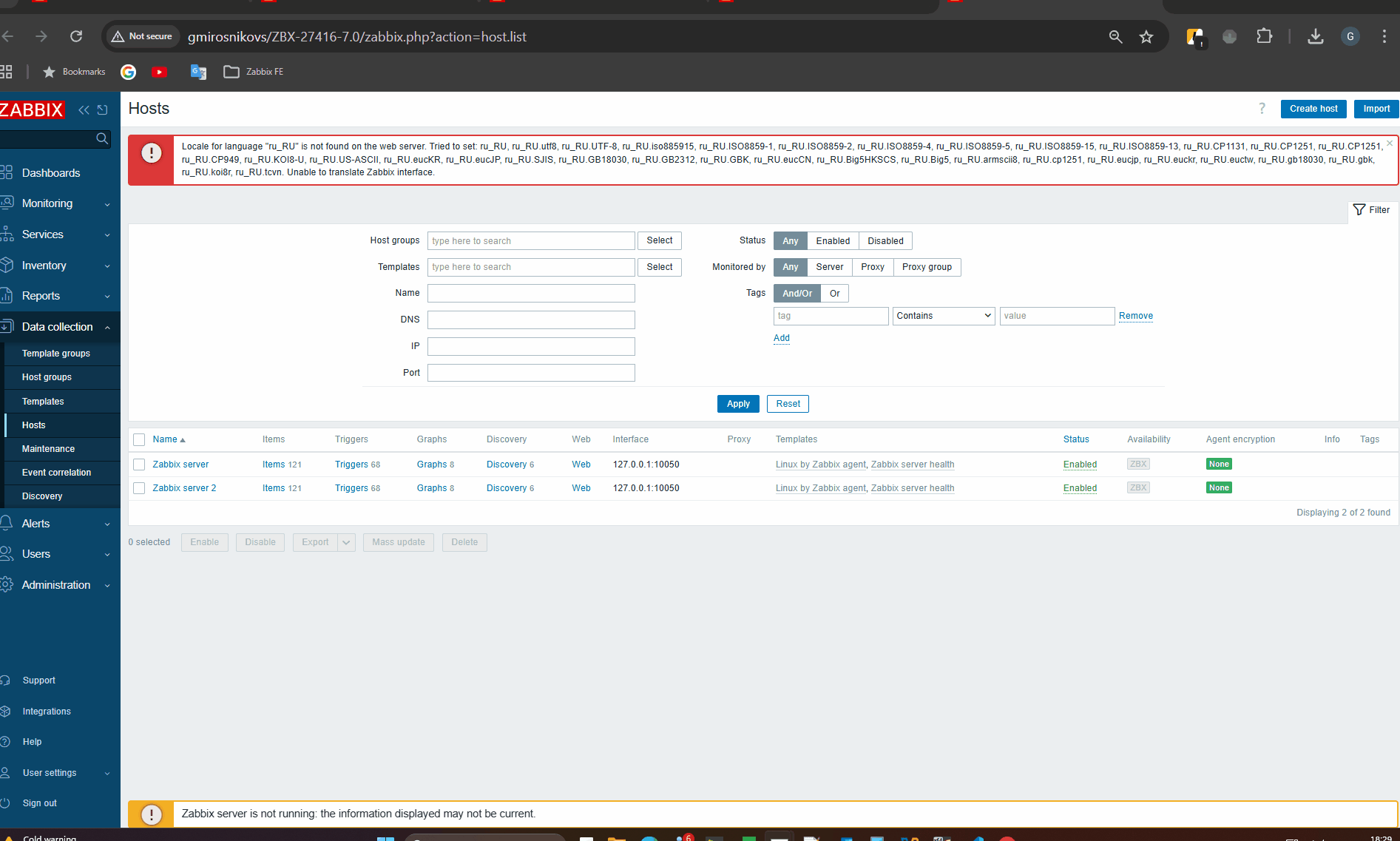 - Change user language or uninstall locale support for chosen language so when opening any page error about unsupported locale is displayed for user