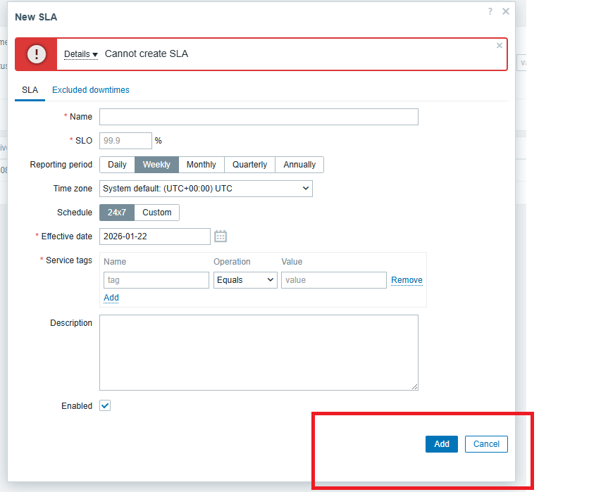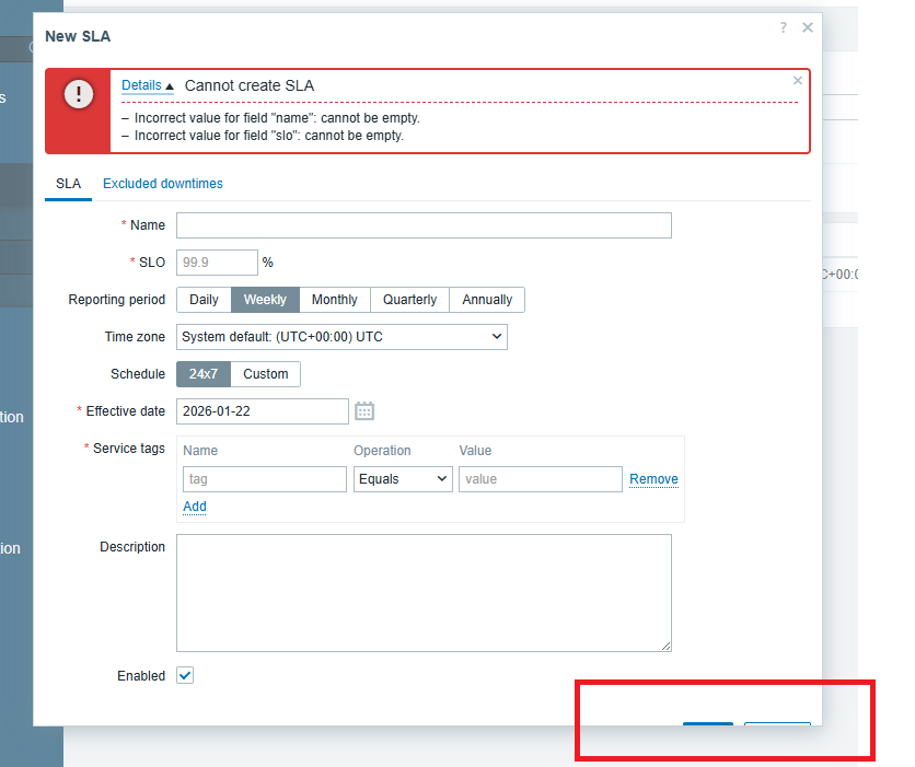 - Open form with pop-up without inline validation (f.e. SLA create form)