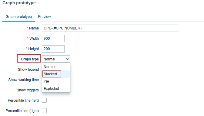 2. Update the discovery rule grahp prototype to use Stacked graph type.