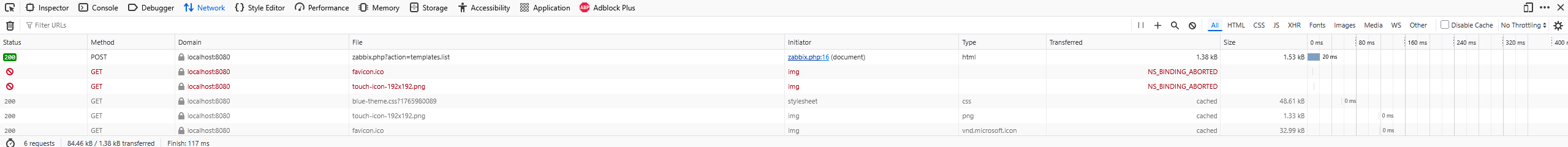 When this error occured, I didn't see any logs printing in /var/log/zabbix/.log and no any error logs about this in /var/log/php-fpm/.log and in /var/log/httpd/*.log.