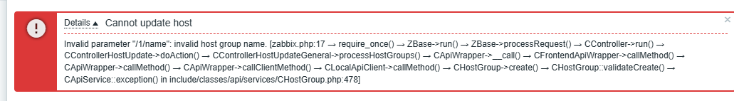 Other cases: Same error is observed when creating new Template and providing invalid template group. When editing a template and invalid template group name is provided error message is empty