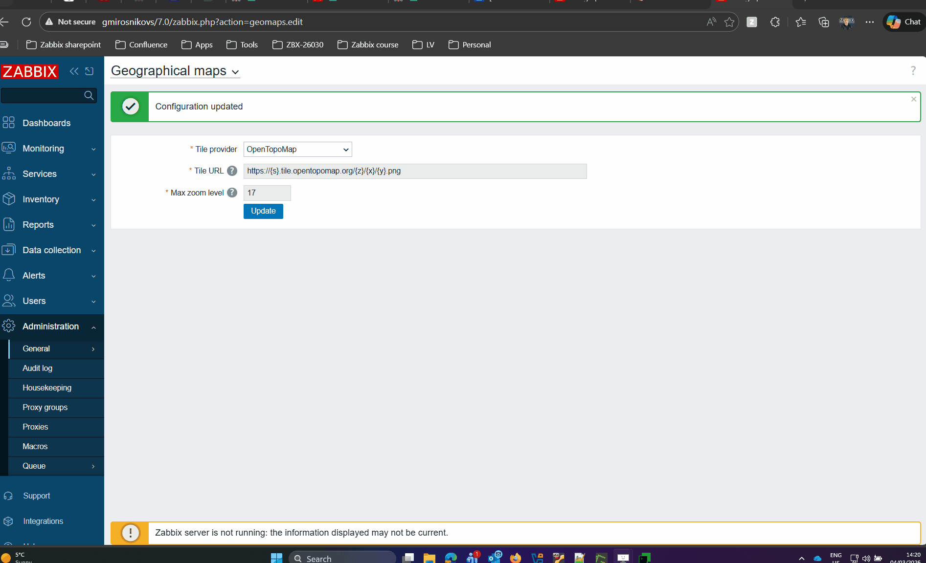 - Go to "Administration" -> "General" -> "Geographical maps"