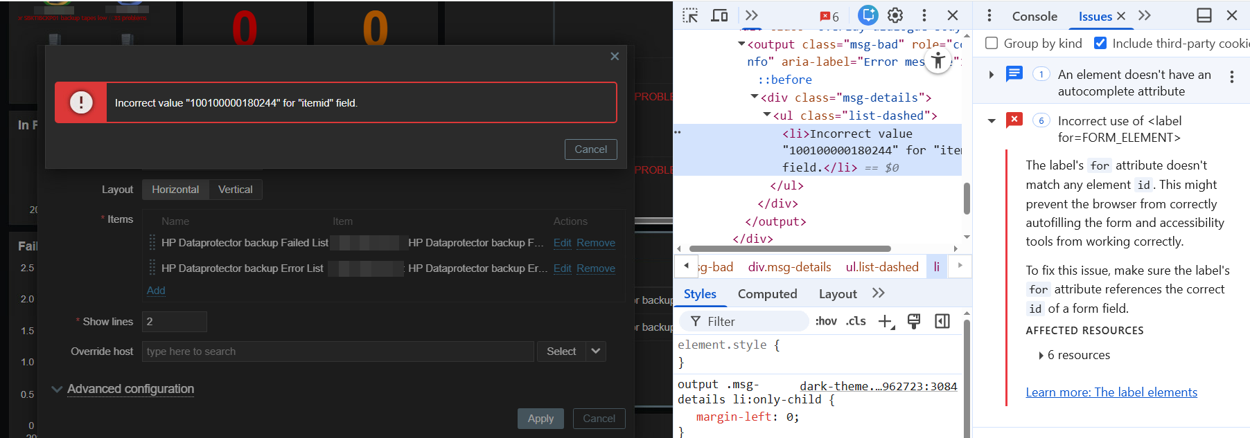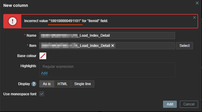 This problem is identical to "ZBX-27274", but appears in a different place, e.g.: when adding the "item history" widget to the dashboard.
