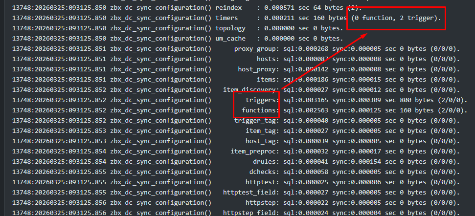 318632:20260305:080438.901 zbx_dc_sync_configuration() timers : 3.489915 sec 160 bytes (2). 318632:20260305:080604.017 zbx_dc_sync_configuration() timers : 3.560886 sec 168 bytes (2). 318632:20260305:080730.692 zbx_dc_sync_configuration() timers : 3.539628 sec 160 bytes (2). 318632:20260305:080855.850 zbx_dc_sync_configuration() timers : 3.656017 sec 160 bytes (2). 318632:20260305:081021.913 zbx_dc_sync_configuration() timers : 3.616663 sec 160 bytes (2). 318632:20260305:081147.336 zbx_dc_sync_configuration() timers : 3.666300 sec 160 bytes (2).