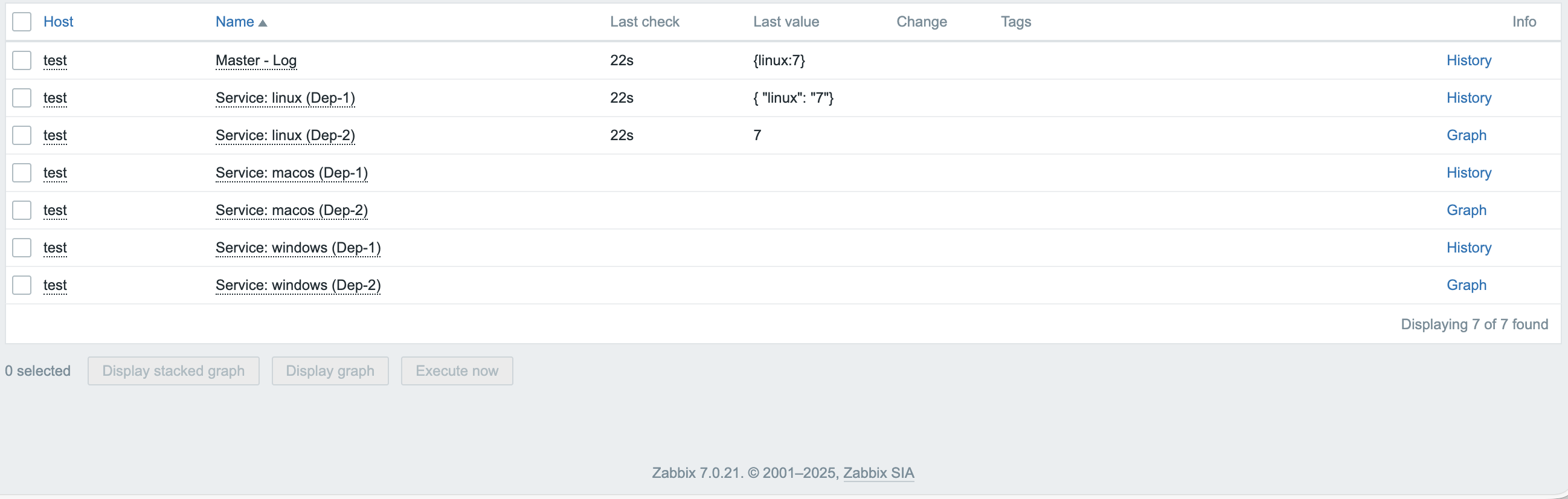 zabbix_sender -z 127.0.0.1 -s test -k master.log -o "{linux:7}"