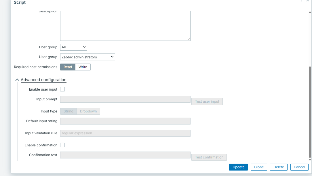- Open Script form with Manual host action (f.e., Detect operating system which is one of the available ones with default DB)