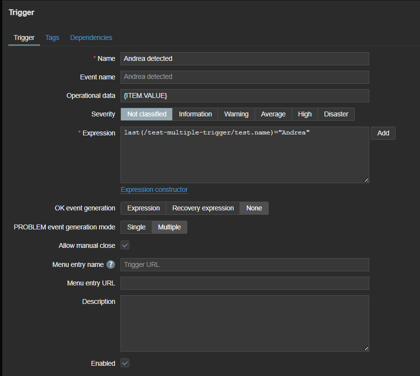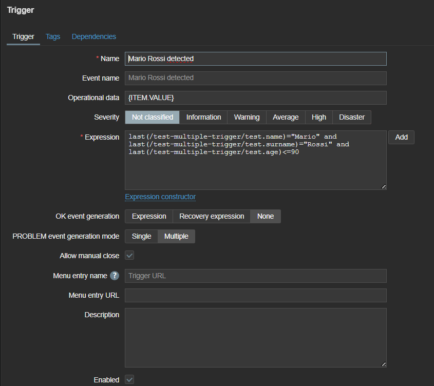 - Create a host named test-multiple-trigger monitored by a proxy or server.