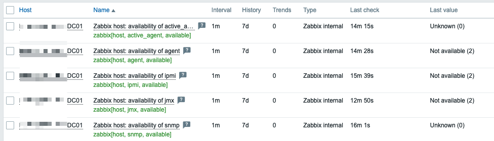 - zabbix[host, agent, available] returns "2 - not available"