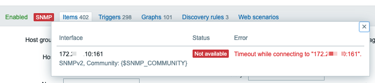 - zabbix[host, snmp, available] should return "2 - not available"