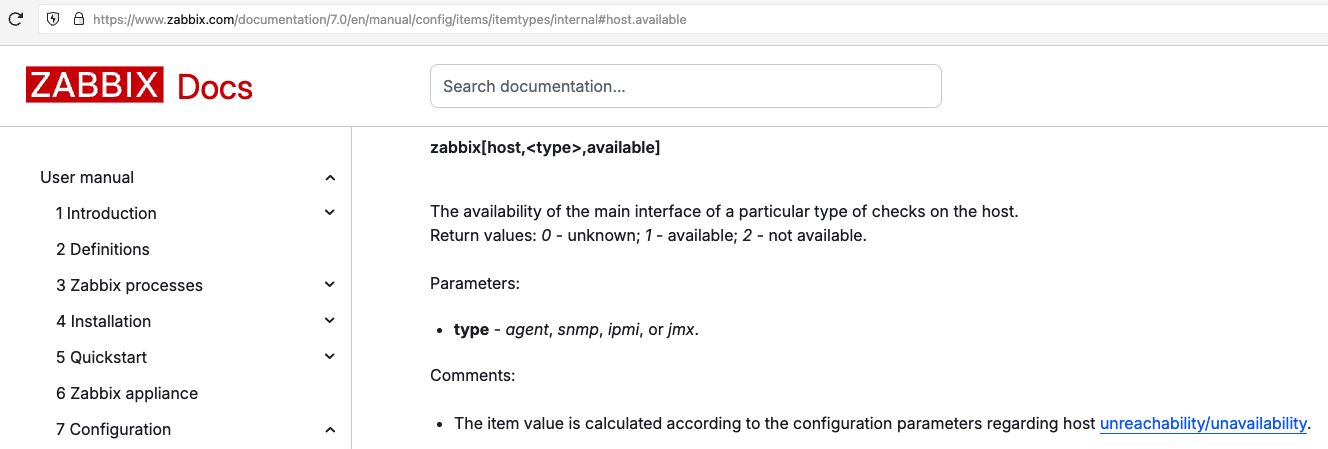 - zabbix[host, agent, available] should return "0 - unknown"