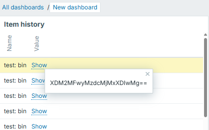 The binary value of multibyte characters is not displayed as expected in some of the widgets, which have option of Show value for binary item. For example, item history or item card widget.