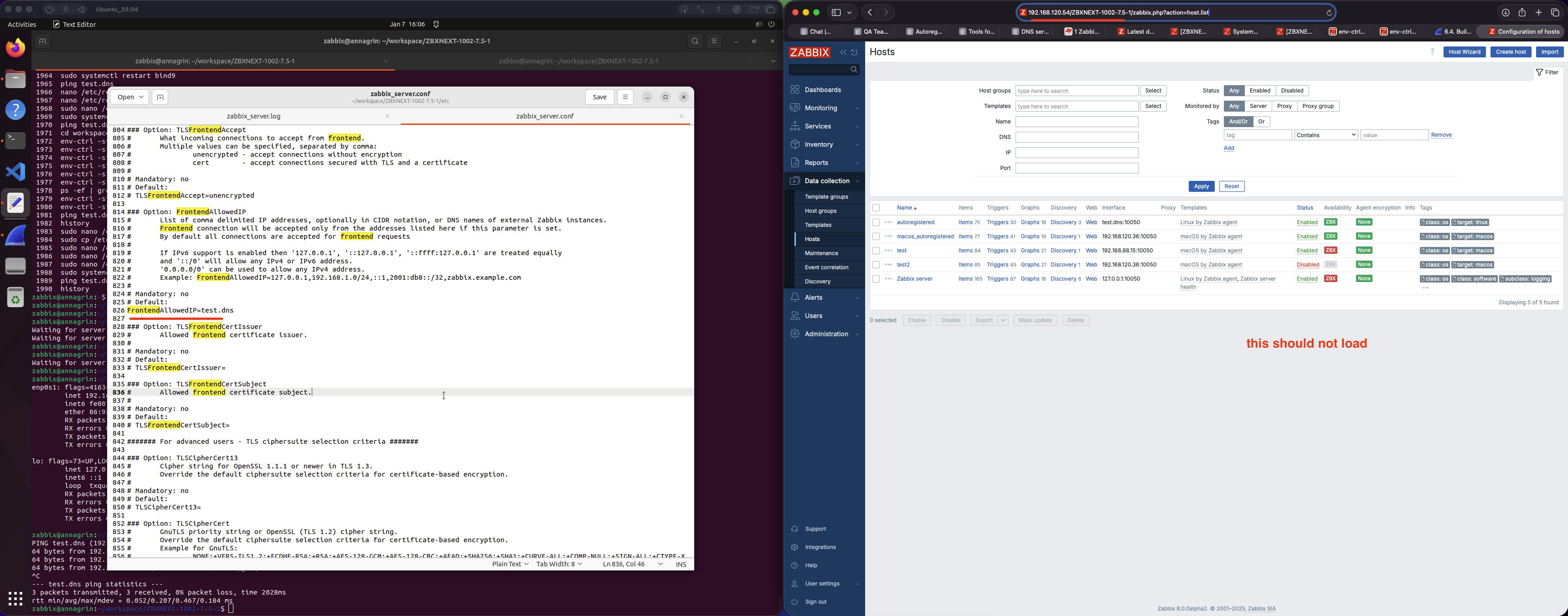 Using the IP address of the Zabbix server does not create any DNS traffic.