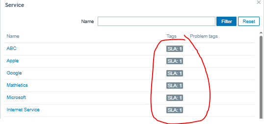 Zabbix SLA Report - Allow Tag & Problem Tag Filtering