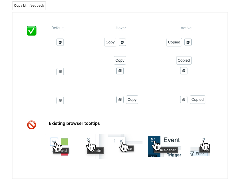 This may create uncertainty for the user, specially in cases where the copied value is critical (API tokens), or when the browser silently restricts clipboard access.